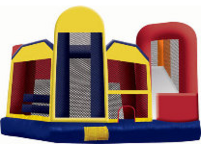 The 5-in-1 combo style bounce house is the ultimate in inflatable jumpers! The large interior jumping area offers a basketball hoop and both log and pop-up obstacles. This bouncy castle has a climb feature and a convenient exit slide for hours of active fun! Parents and spectators are offered a clear view with the 360-degree mesh sides of this moonwalk. The 5-in-1 combo bounce house is made of lite n strong™ fire-resistant vinyl for safety, durability and easy portability. This 5-in-1 bouncy house is sure to make any indoor or outdoor event a great success!